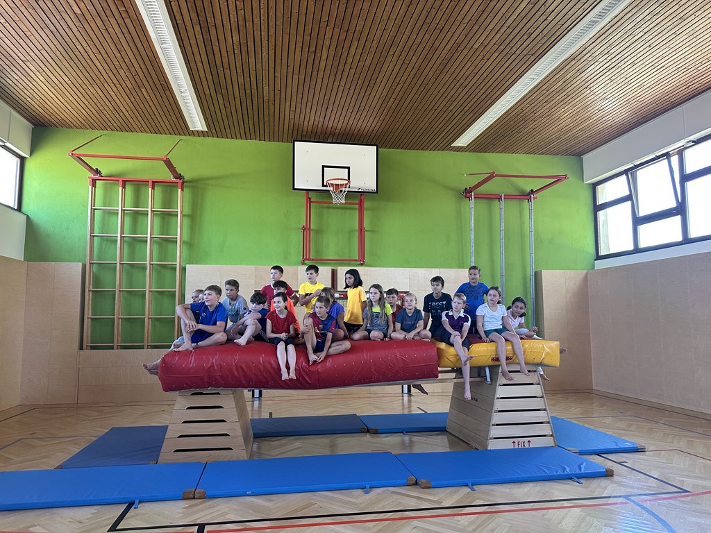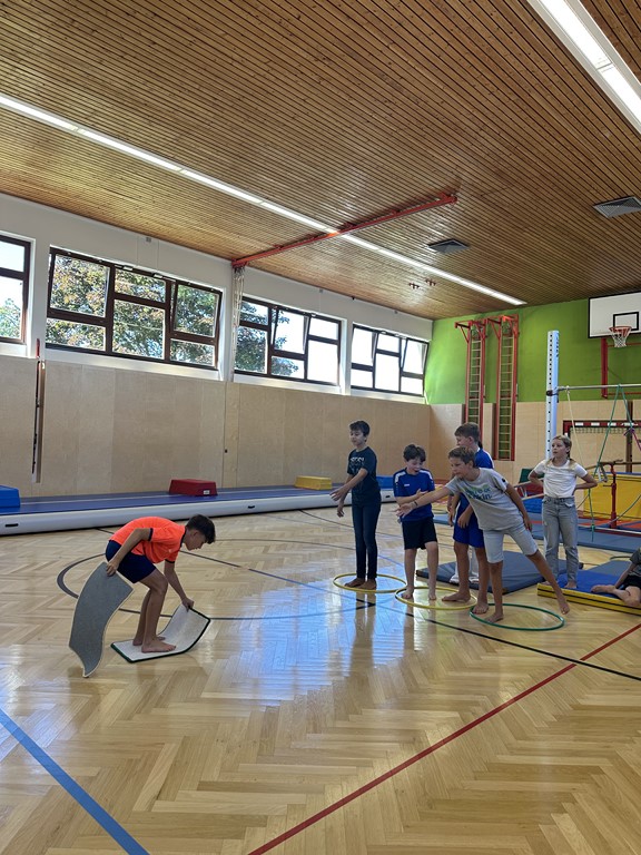 Die beiden ersten Klasse erkundeten das Schulhaus, durchliefen einen Geschicklichkeitsparkour im Turnsaal und machten Aktivitäten zum Kennenlernen.
